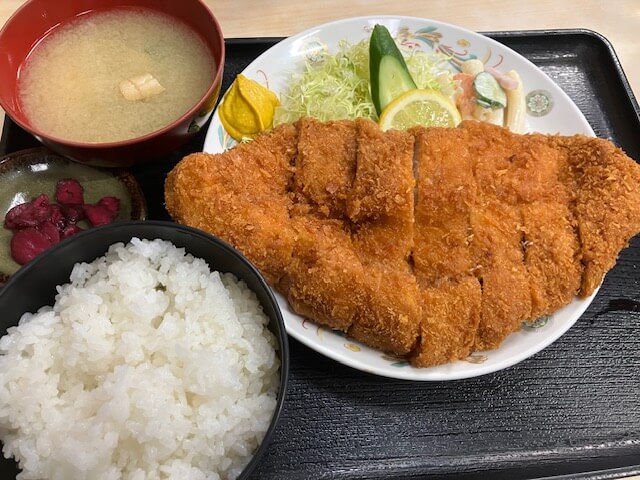 400グラムは超えてますね。このとんかつを完食できるかで自分の体調が良いかを確認している自分がいます。今回も少し余裕を残して食べれたので体調は良いみたいです。