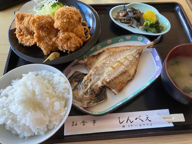 岩井海岸近くの「しんべえ」に定期訪問。変わらず安定感のある味とボリュームでした。揚げ物は魚も肉も同じ鍋で揚げるのでちょっと生臭く感じるかも。原材料高もあって結構強気のお値段ですがまあ仕方ないですね。