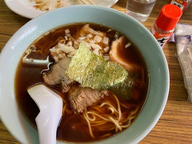 竹岡式なのでチャーシューは醬油感強めで薬味に玉ねぎ入っているスタイル。これがすっきり美味いです。