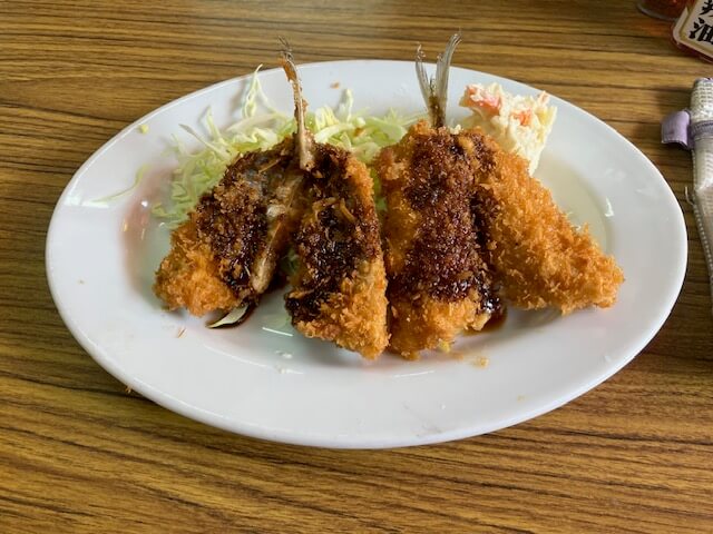 アジはかなり小ぶりでした。時期的なものかもです。イカフライのほうがよかったかも。