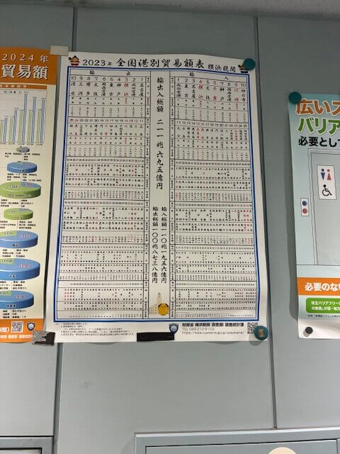 さて、今回は打ち合わせで訪れたのですが壁に張ってあるポスターに税関のポスターがあって貿易額の港ランキングがありました。成田空港強いんですね。