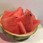 朝からスイカを頂く。親戚から頂いたこだまスイカを見ていたら切りたくなり朝から頂いております。スイカは疲労回復に効くアミノ酸が入っているので実は朝食べるのが良いのです。少し塩をかければ熱中症対策にもなりますし。