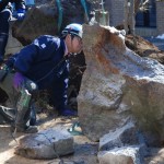 さきほどの投稿に続きこちらもお客様から頂いた弊社の作業写真。私が石の目(石にはそれぞれ割れやすい筋があります)を読んでドリルで穴を開けたところの様子です。重さ1.5トンの石が約2時間後には15キロくらいの漬物石大になって… 続きを読む