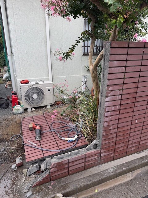 ブロック塀の一部解体のご依頼。コンクリートカッターで切断して作業終了。ブロック塀の一部解体でしたら作業時間としてはあまりお時間かからず作業可能ですので是非ご相談ください。