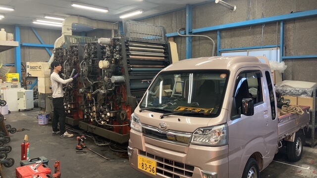 大型印刷機の解体撤去作業。搬出経路が狭く予定よりもかなり時間がかかりました。作業時間のわりに安いと思われる方もいると思います。解体した機械はスクラップとして買い取り可能なのでその分で作業費を相殺しております。