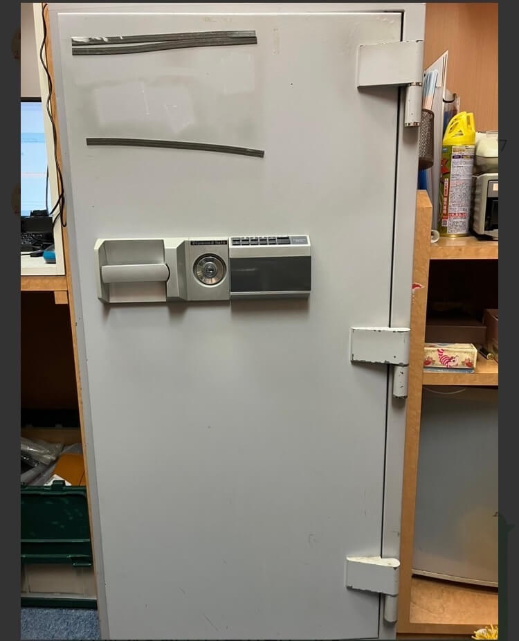 中型金庫の撤去作業。狭い通路を搬出する作業が伴ったため少し費用は高めに設定しております。