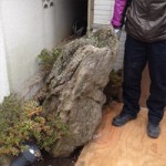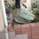 ◆作業人数 3名 ◆作業時間 1時間 ◆費用 35,000円 300㎏程度の庭石。玄関前に横付けされているため、住宅を傷めないよう工具を極力使わずに作業。
