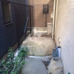 ◆作業人数 3名 ◆作業時間 2日 ◆費用 300,000円 千葉県八千代市、住宅内にある庭石の解体撤去作業。大きいもので1個当たり600㎏。合計6tの庭石を撤去。